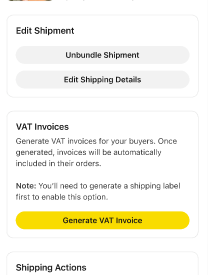 Die Mehrwertsteuerrechnung für Käufer ist pro Sendung verfügbar. Verkäufer können jetzt zur Seite „Sendungen“ im Verkäufer-Hub (nur im Web) gehen und eine Rechnung erstellen. Sobald der Livestream abgeschlossen ist und das Etikett für die Sendung generiert wurde, steht die Option zur Erstellung einer Mehrwertsteuerrechnung zur Verfügung.
