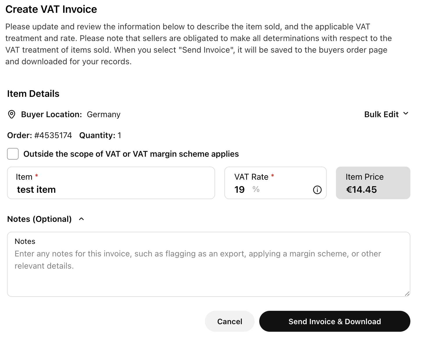 Sellers can also bulk edit the VAT details for the items in the order using the “bulk edit” button.