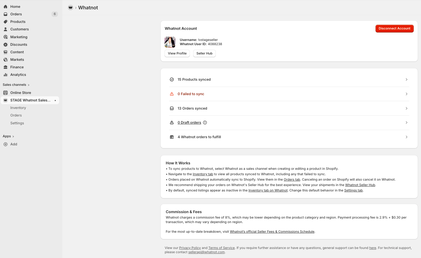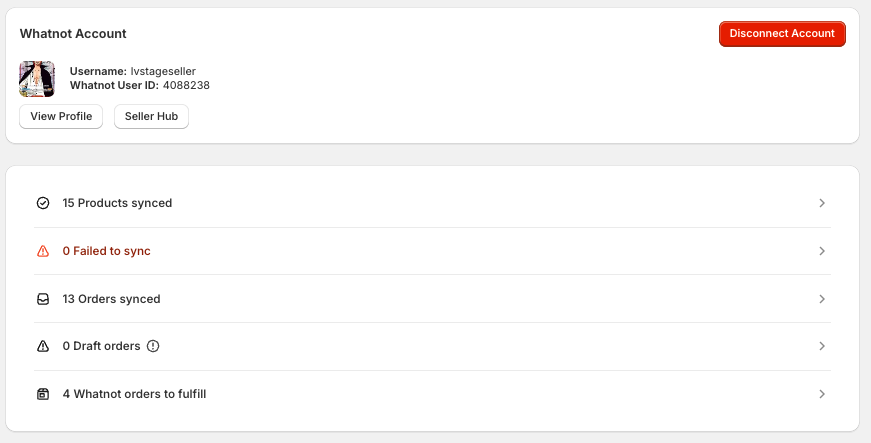 - Country/region mismatch: Your Shopify store's primary region must match your Whatnot seller account's country (e.g., a U.S. Whatnot account requires a U.S. Shopify store).