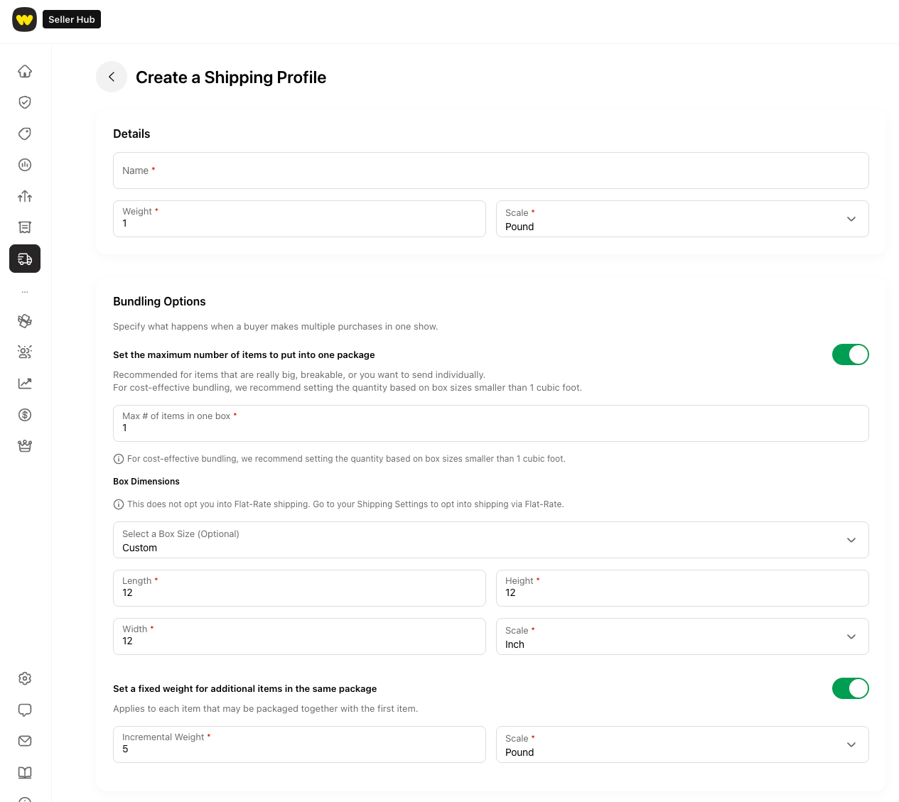Products from Shopify will have a shipping profile automatically assigned based on the weight set in Shopify. If you'd like to create a custom profile that better suits your fulfillment needs, you can do so on Whatnot and attach it to your imported Shopify listings.
