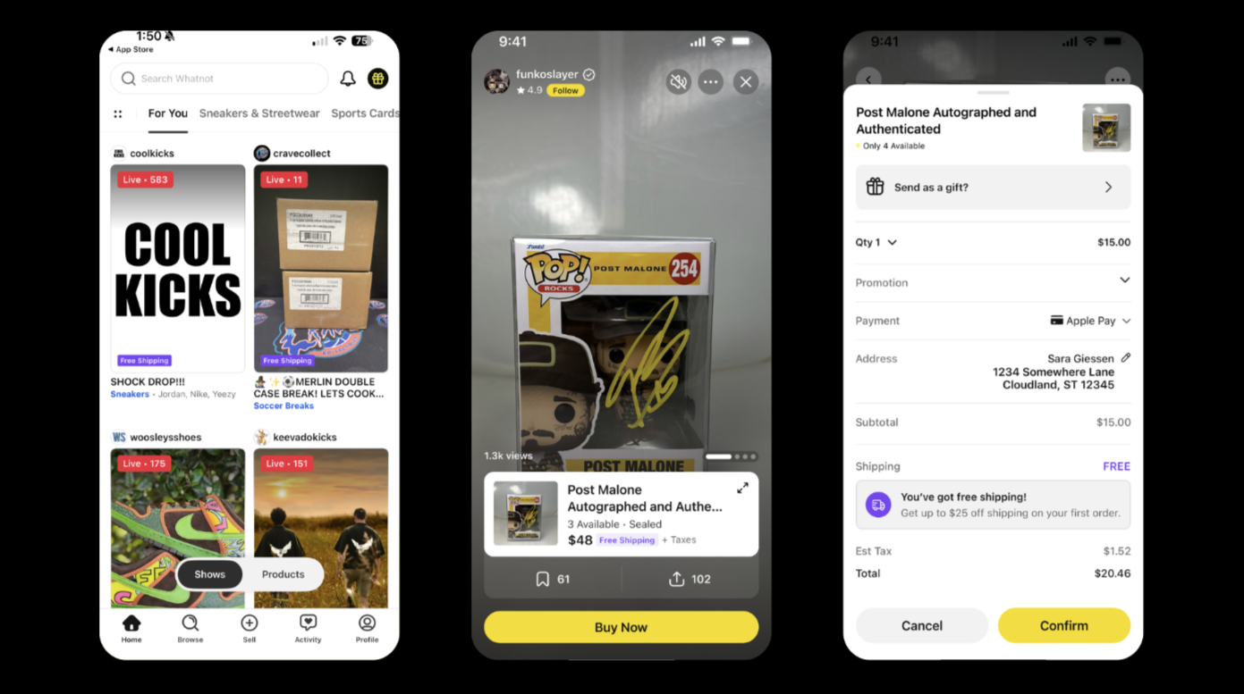 Pour rendre cet avantage plus accessible, Whatnot essaie la livraison gratuite pour les primo-acheteurs sur iOS et Android (aux États-Unis uniquement), jusqu'à concurrence de 25 dollars sur leurs premiers achats, que ce soit dans le cadre de ton livestream ou dans ta boutique. Cela signifie que les nouveaux clients peuvent rejoindre ton livestream, placer leur première offre en toute confiance et profiter de leurs articles sans se soucier des frais de port. Ce n'est pas un « petit » coup de pouce. La livraison peut être l'un des principaux obstacles à la conversion de nouveaux acheteurs, et la suppression de cet obstacle pourrait faire la différence entre un acheteur qui fait du lèche-vitrine et un nouveau client fidèle.