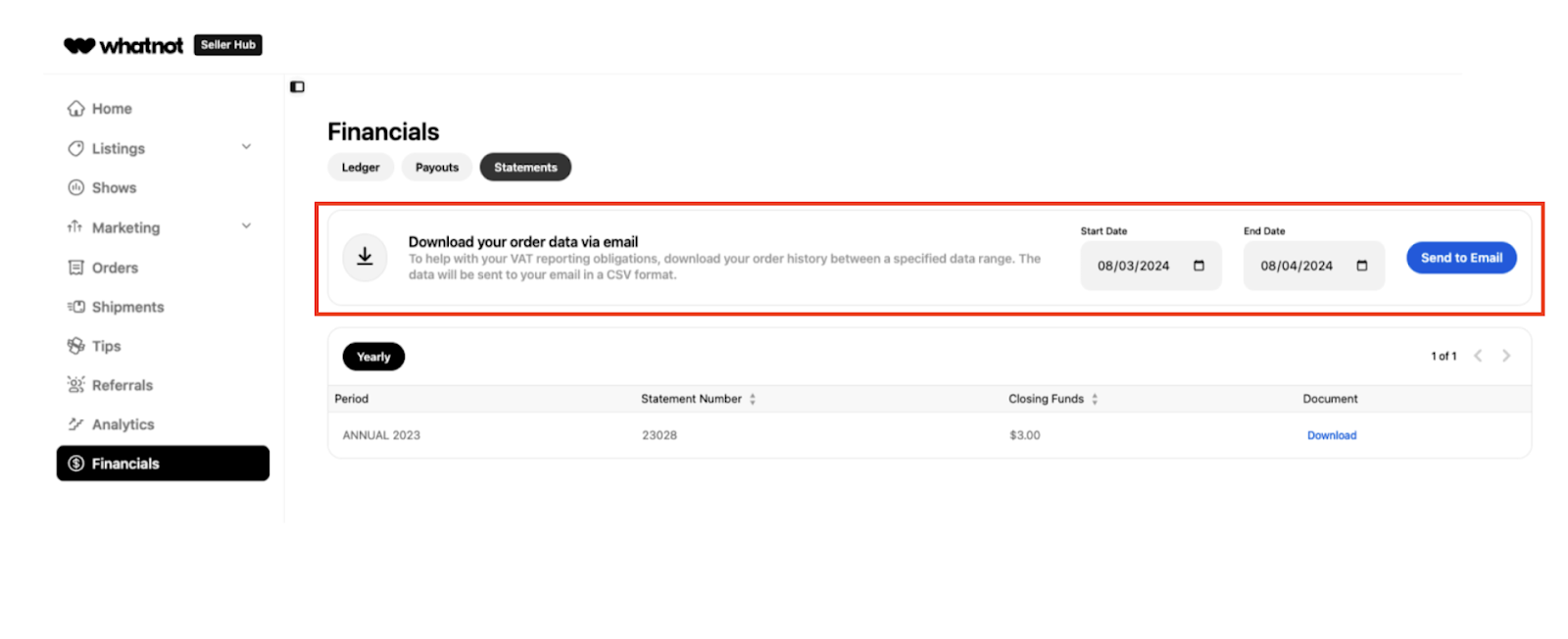 Depuis whatnot.com, ouvre ton Portail vendeur.