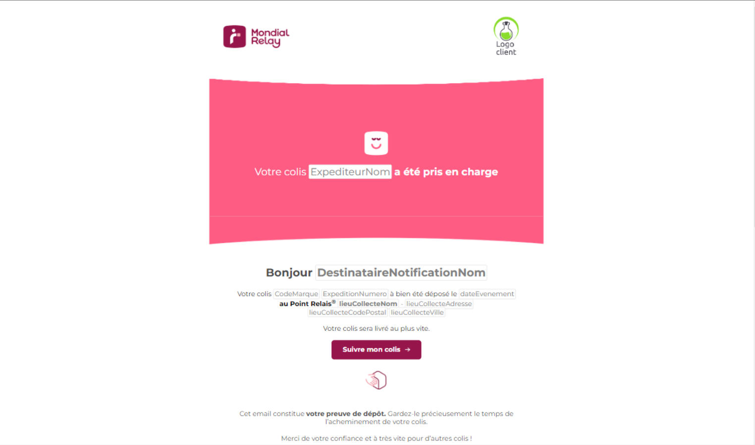 Mondial Relay enverra un e-mail de confirmation depuis noreply@mondialrelay.fr. pour les colis expédiés via leurs services. Veuillez utiliser cet e-mail comme preuve de dépôt dans l’éventualité où notre équipe d’assistance vous contacte au sujet d’un colis.