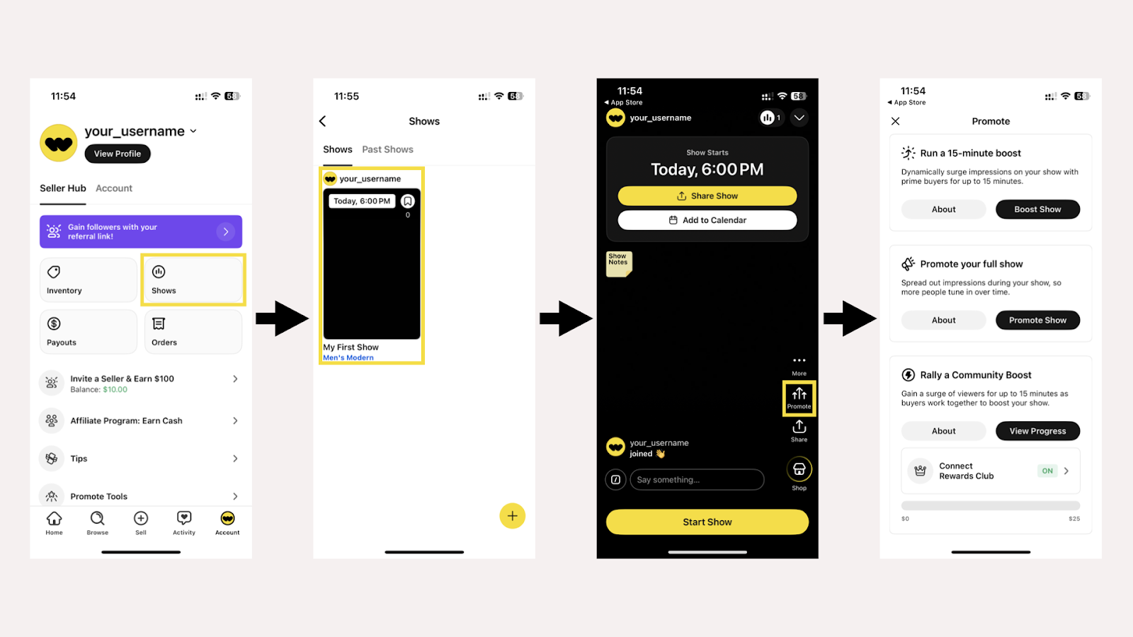 Les livestreams faisant l'objet d'une promotion sont davantage mis en valeur dans les flux des acheteurs potentiels lorsqu'ils scrollent : ainsi, cela accroît la visibilité du livestream, t'aide à développer ton audience, contribue à booster l'engagement et, en fin de compte, te permet de réaliser plus de ventes.