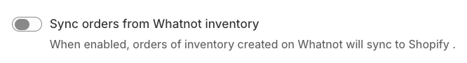 Par défaut, les inventaires créés exclusivement sur Whatnot ne sont pas synchronisés avec Shopify. Cependant, tu trouveras une option permettant de synchroniser les commandes depuis Whatnot sur la page Paramètres de l'application du canal de vente Whatnot.