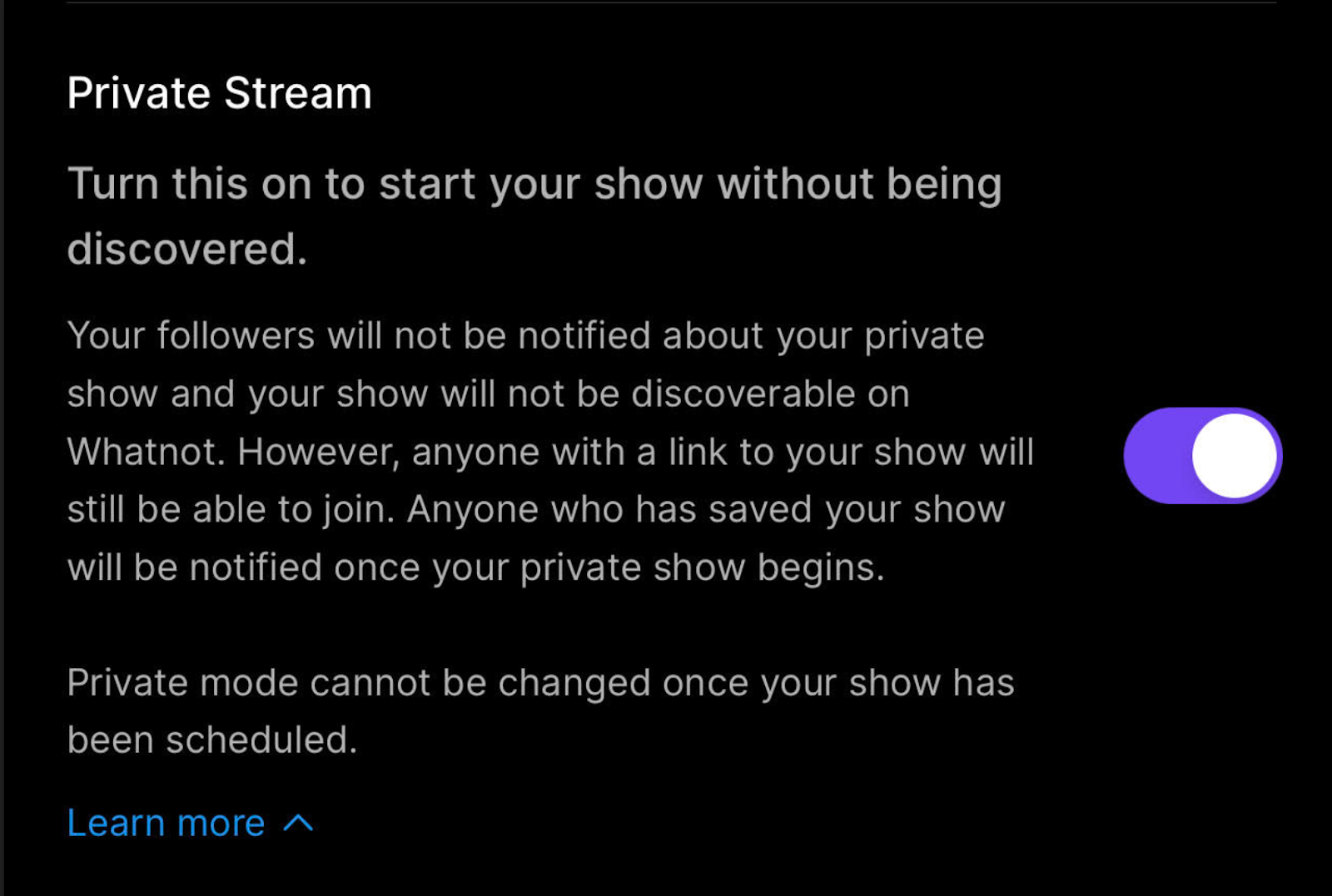 Si vous souhaitez lancer un live accessible à tous après avoir utilisé un live privé, vous devrez désactiver le mode privé (dans l'application de bureau ou le navigateur web) ou programmer un autre live.