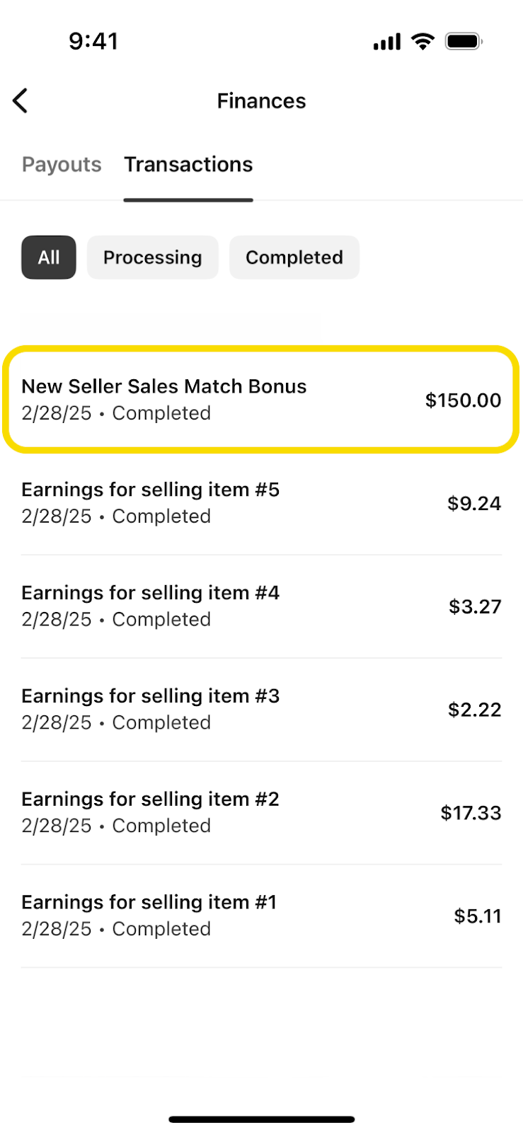 支払いは、出品アカウント内で「新規出品者向けセールスマッチボーナス」というラベルで表示されます。確認方法は以下の通りです。