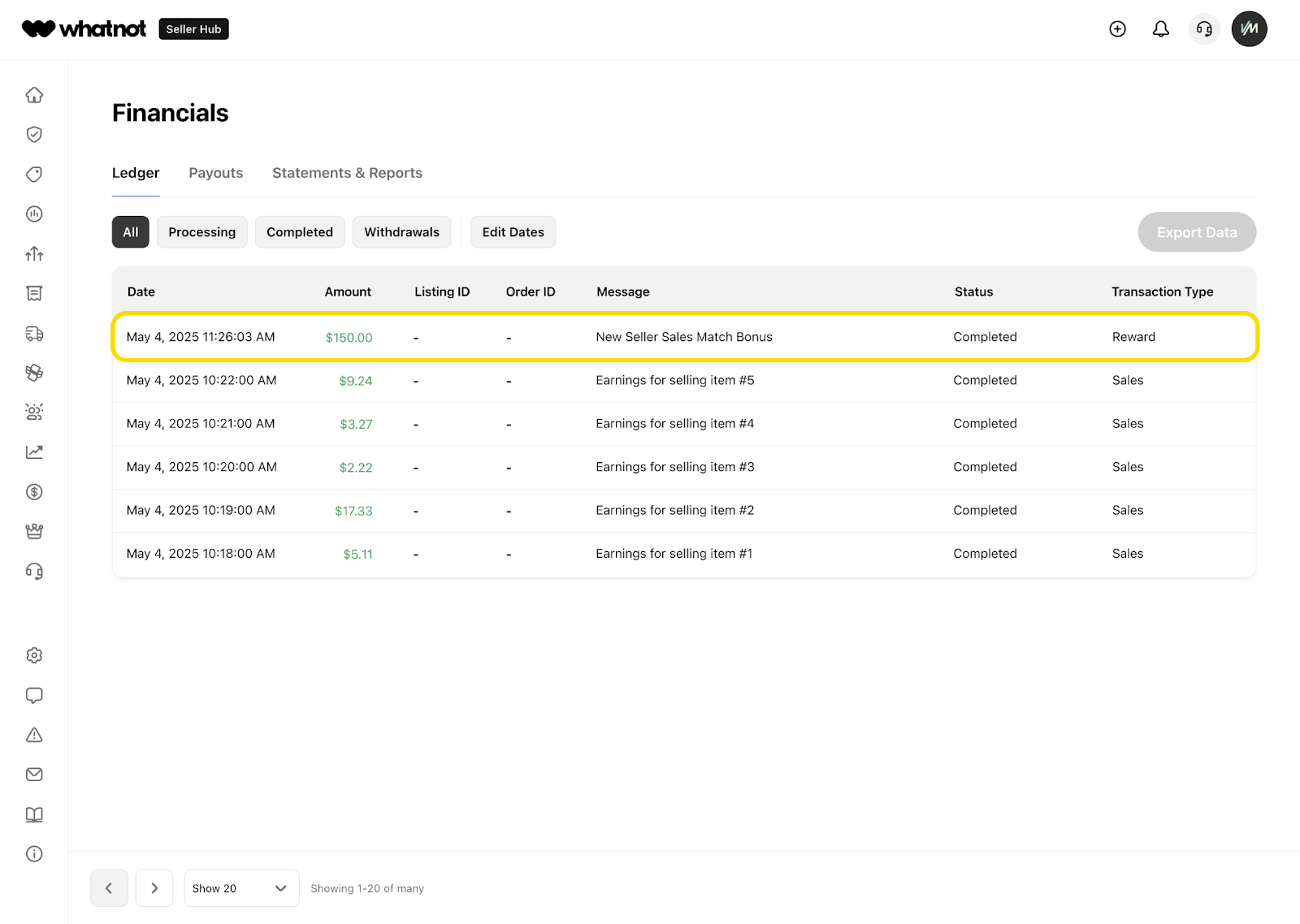 Whatnotで販売を始める皆さまをサポートし、最初の一歩を応援するために、新規出品者向けセールスマッチボーナスをご用意しています。
