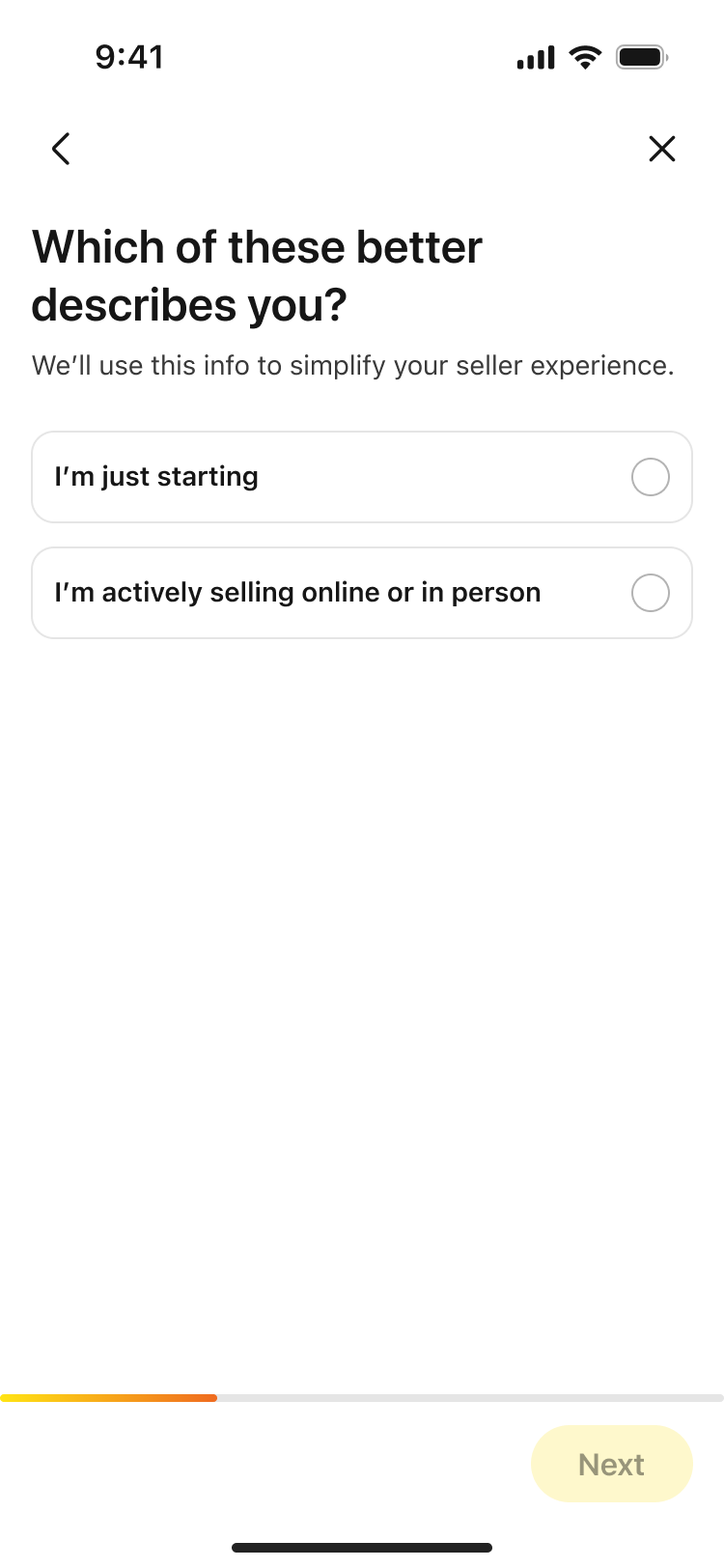 ほとんどの場合、数分以内に出品者アクセスが有効になります。追加の確認が必要な場合は、その次のステップをお知らせします。