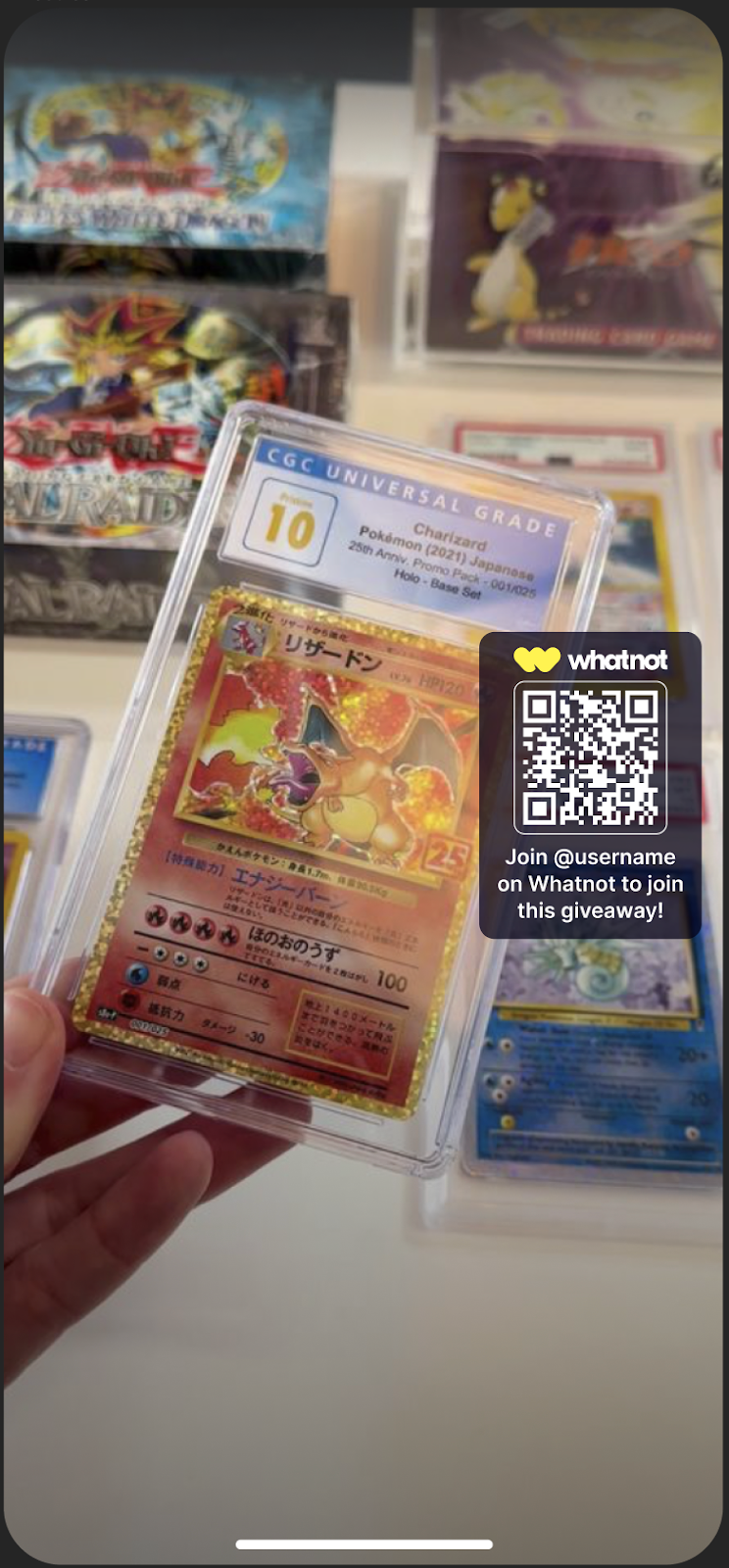 - Als je een giveaway houdt op Whatnot, wordt de overlay aangepast en wordt er ook een QR-code weergegeven om kijkers aan te moedigen naar je stream te komen