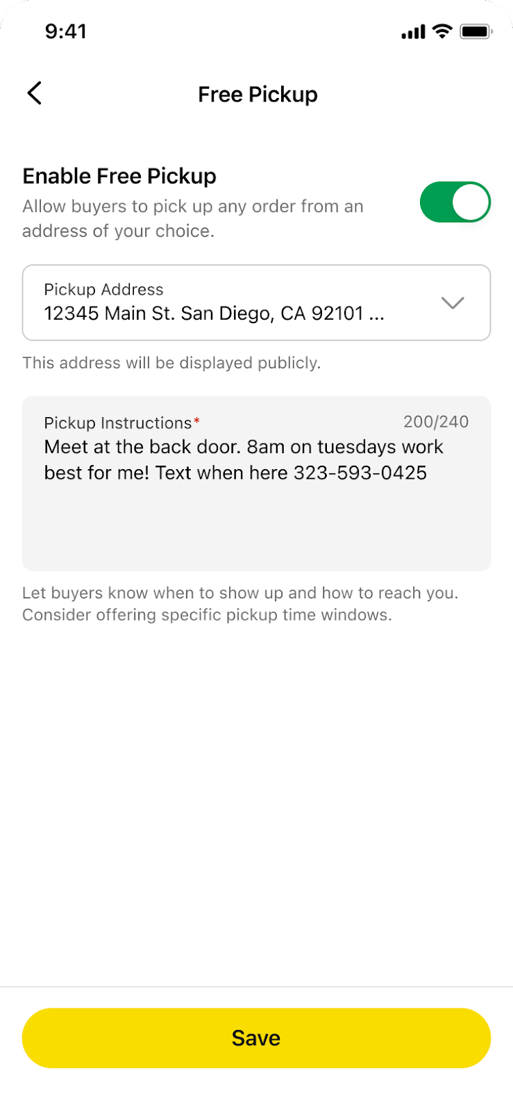 - Jouw afhaaladres is openbaar, dus kijkers kunnen het zien. Gebruik alleen een adres dat je met anderen wilt delen. Meer informatie over de best practices.