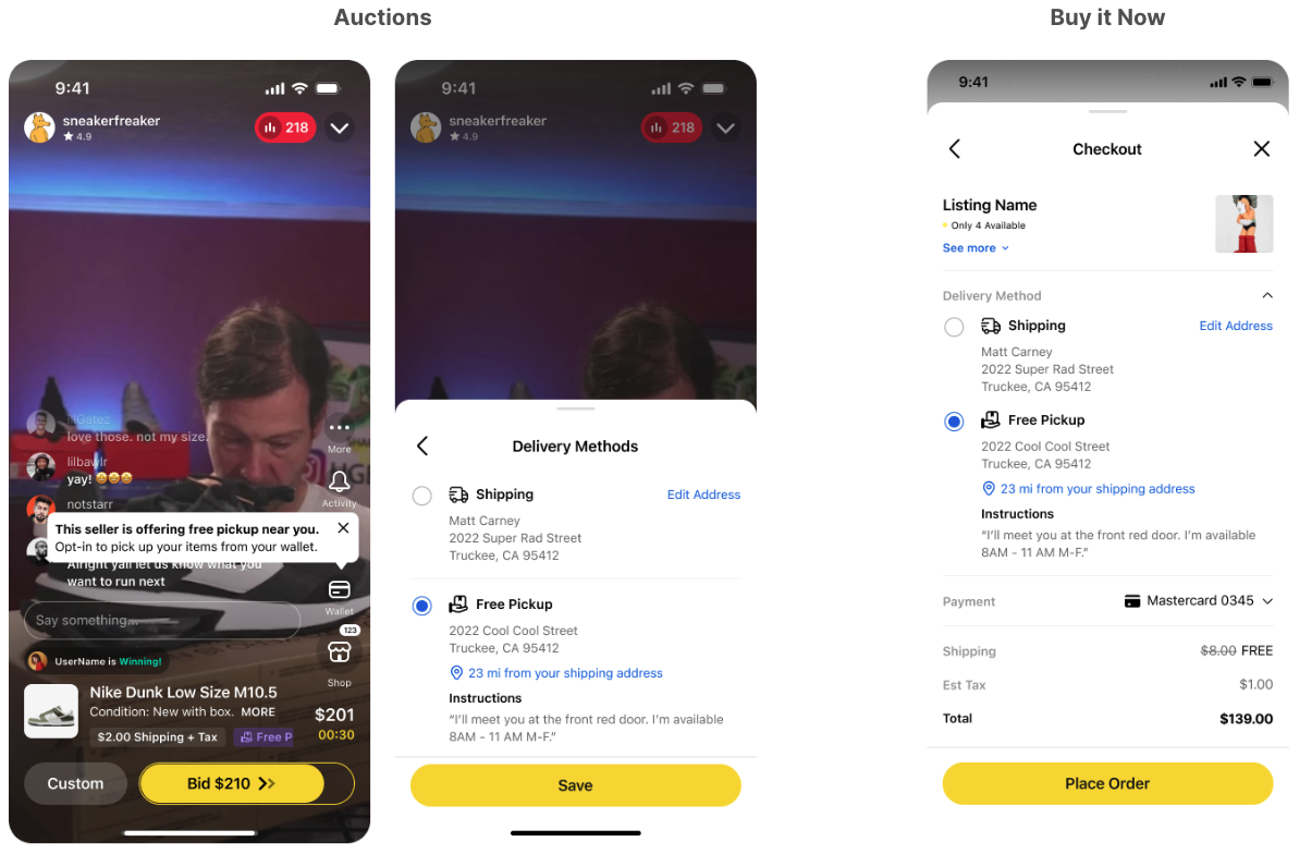 - Veilingen: Tik op Wallet > Verzendmethode > Gratis afhalen voordat je biedt