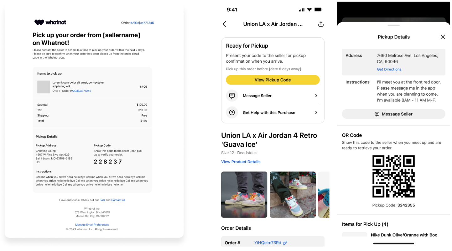- Whatnot Support kan in uitzonderlijke omstandigheden misschien een bestelling omschakelen naar Gratis afhalen, maar dit is een reserveoptie en is niet gegarandeerd