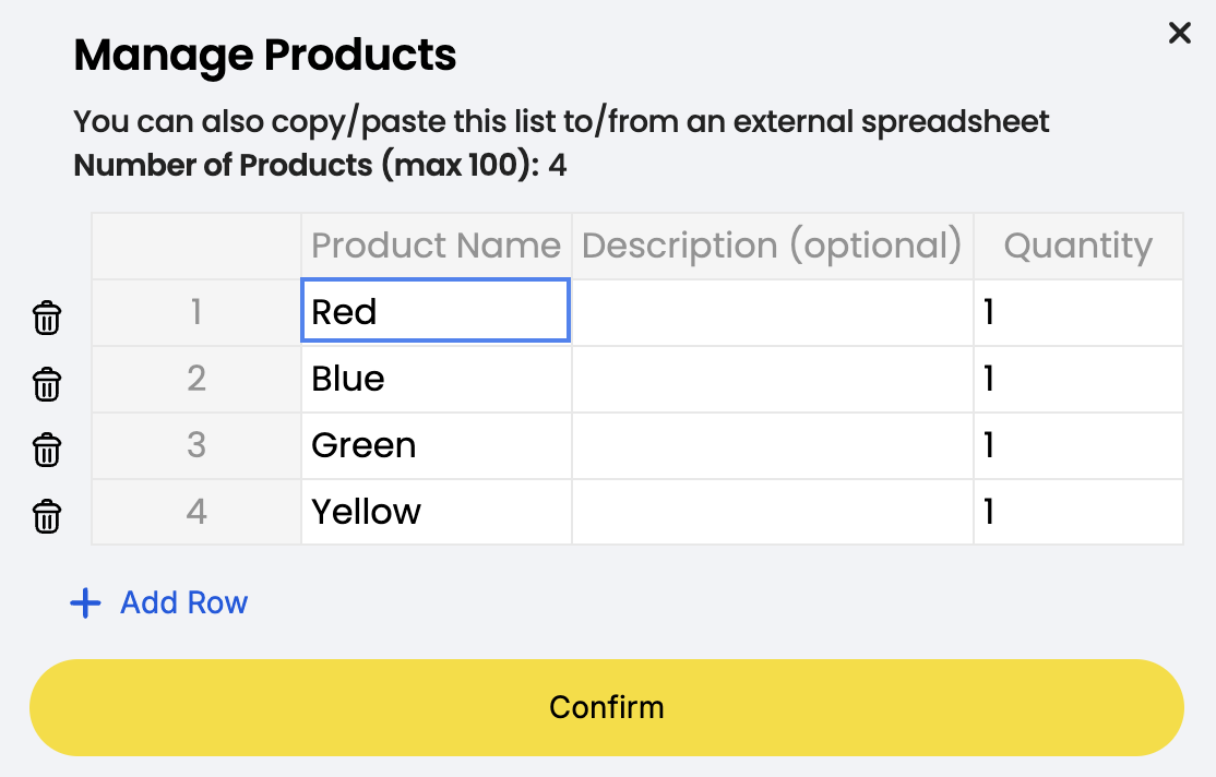 - Voer een naam, beschrijving en hoeveelheid in voor elk product in de set
