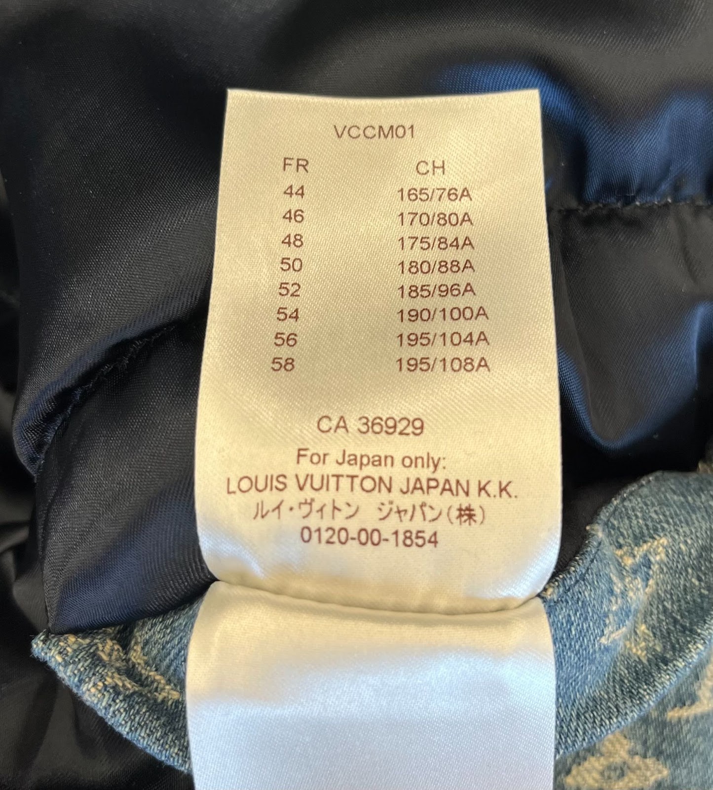 | Productielabel binnenkant (achterkant) | Label aan de binnenkant van de zijnaad | Rits (voorkant) |